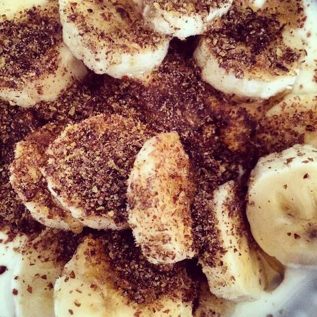 Here is an easy snack to try that’s balanced, high protein, includes health benefits and tastes good! 0% Fat Greek yoghurt ( protein source , can mix your whey in for more protein) , Banana or preferred fruit (carbs), Flaxseeds (fats/omega 3s) 👌🏽 So simple and you can always blend it so you can have it on the go!