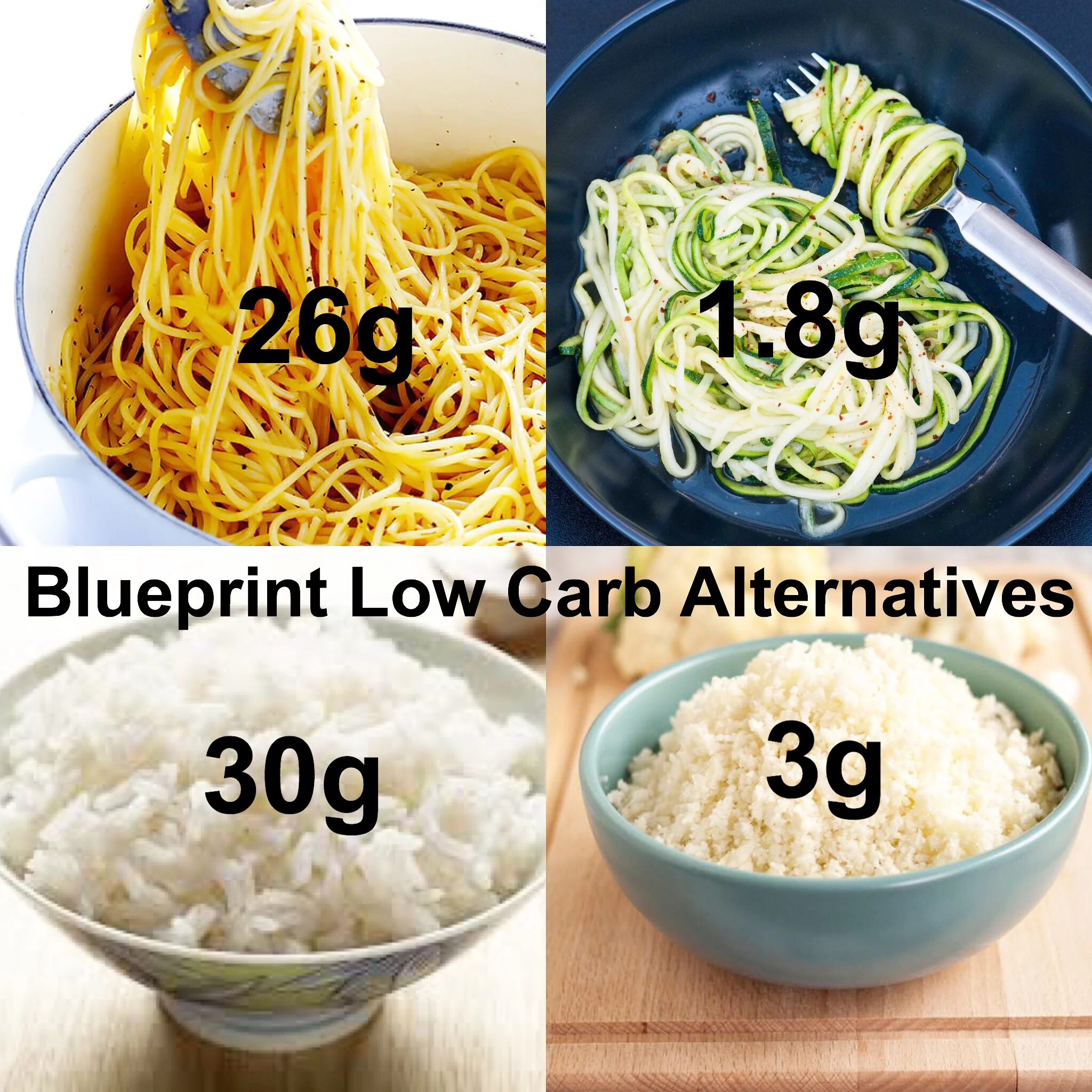 NOTE: if you then go and add lots of extra calorific sauces, side dishes or protein sources you may defeat the lower calories purpose of these alternatives.